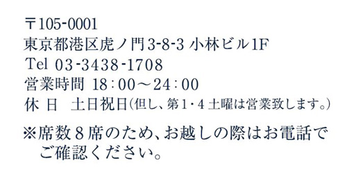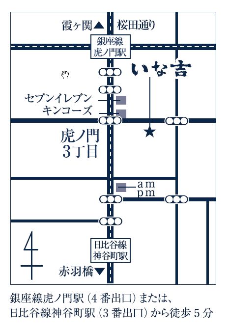 右上【虎ノ門いな吉】の文字色は いな吉の暖簾の色です (^_^;)